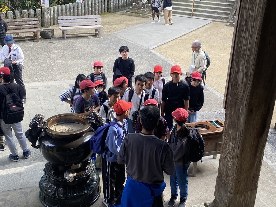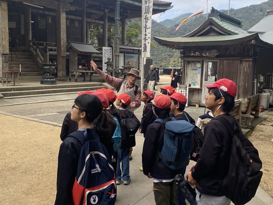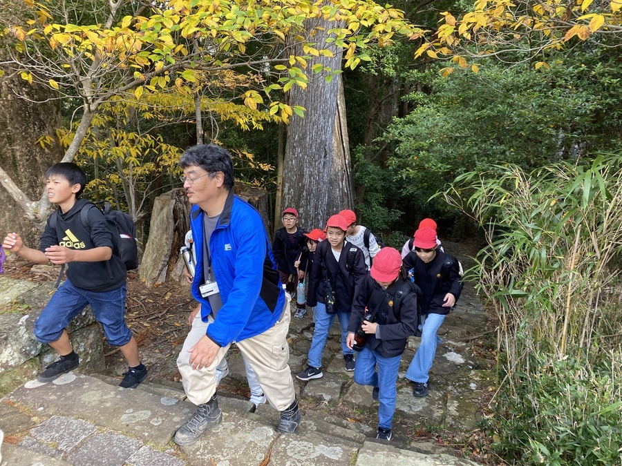 御坊市立名田小学校5,6年生26人引率4名の計30名に次世代育成事業にご参加いただきました。11月27日(木)に事前授業を行い、紀伊路の話や当日現地学習を行う熊野三山についてお話しました。真剣な眼差しで聞いてくれて嬉しかったです。