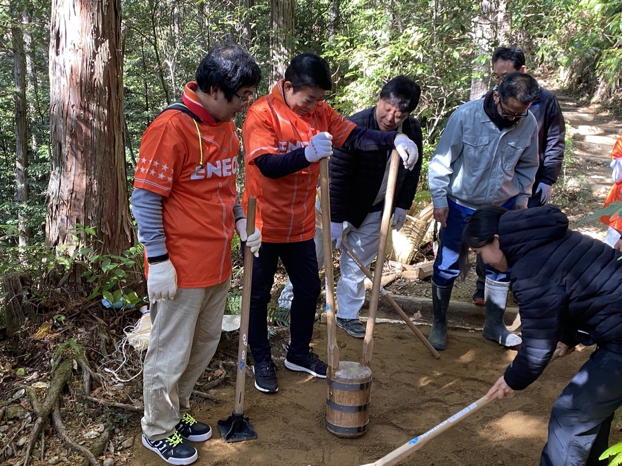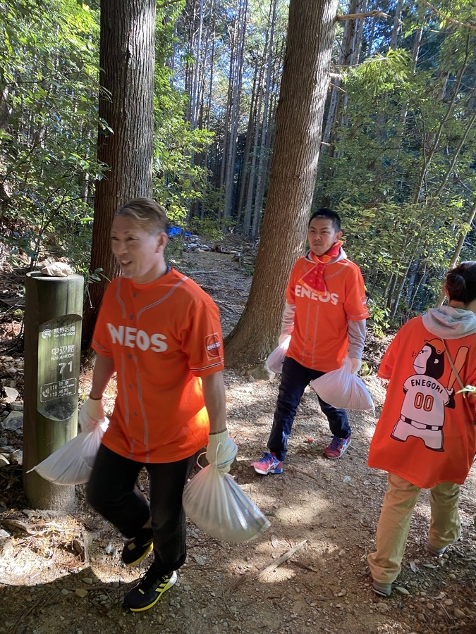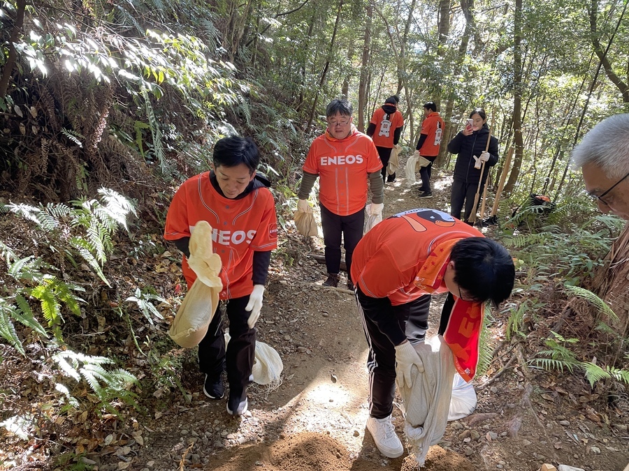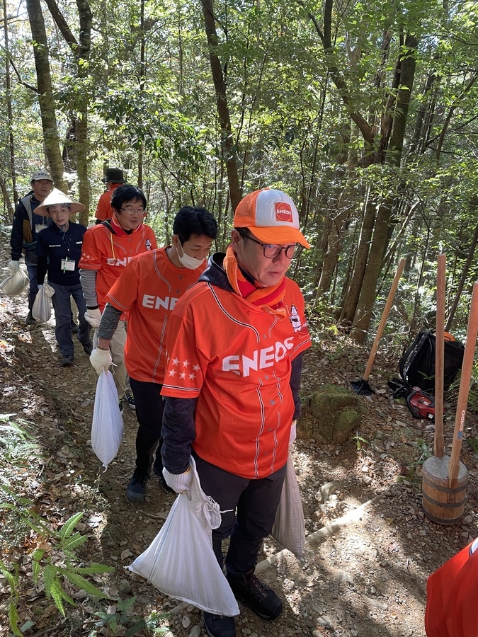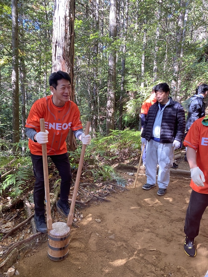 ENEOS株式会社和歌山製油所様は今回で3回目の参加となり25名の皆様と一緒に道普請をさせていただきました。3年連続で来ていただいている方もおられたのでお会いできて嬉しかったです。